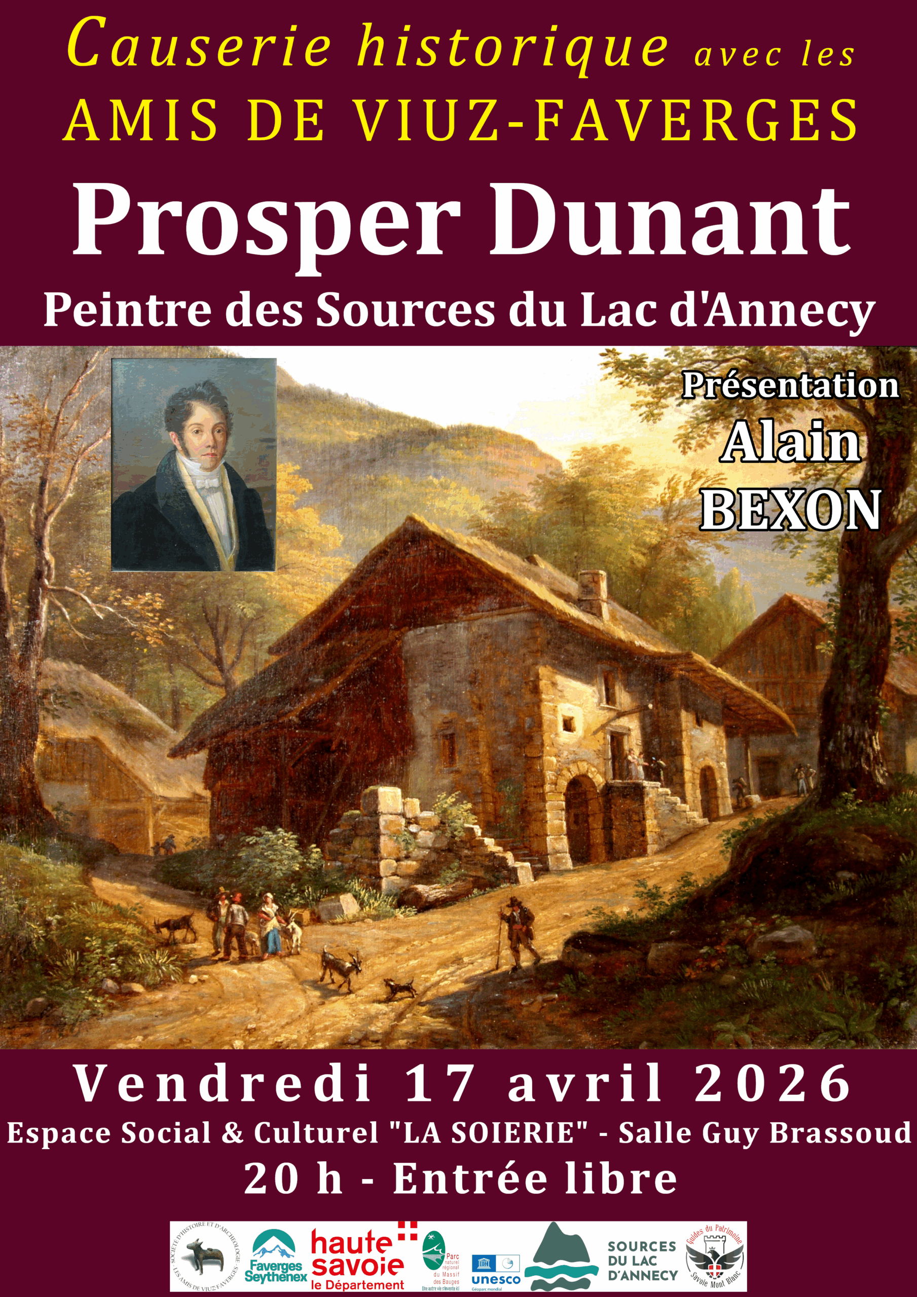 Le thème : Alain Bexon présentera la vie et l’œuvre de l’architecte et peintre Prosper Dunant (dont il est descendant) et plus particulièrement son œuvre de paysagiste à Faverges et dans les environs jusqu’au sud du lac d’Annecy.