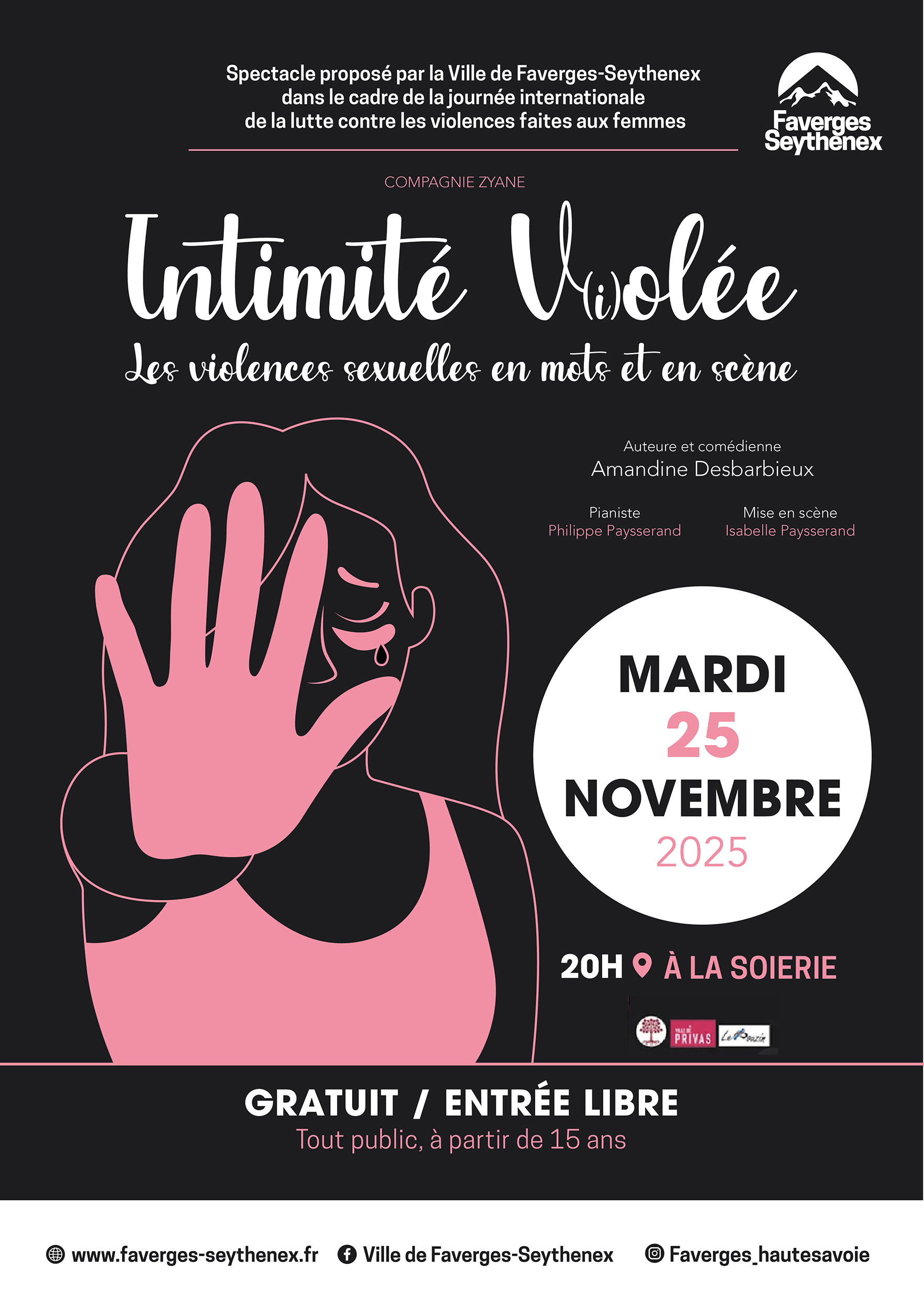 Soirée-théâtre et moments d’échanges proposés par la Ville de Faverges-Seythenex dans le cadre de la journée internationale de lutte contre les violences faites aux femmes.