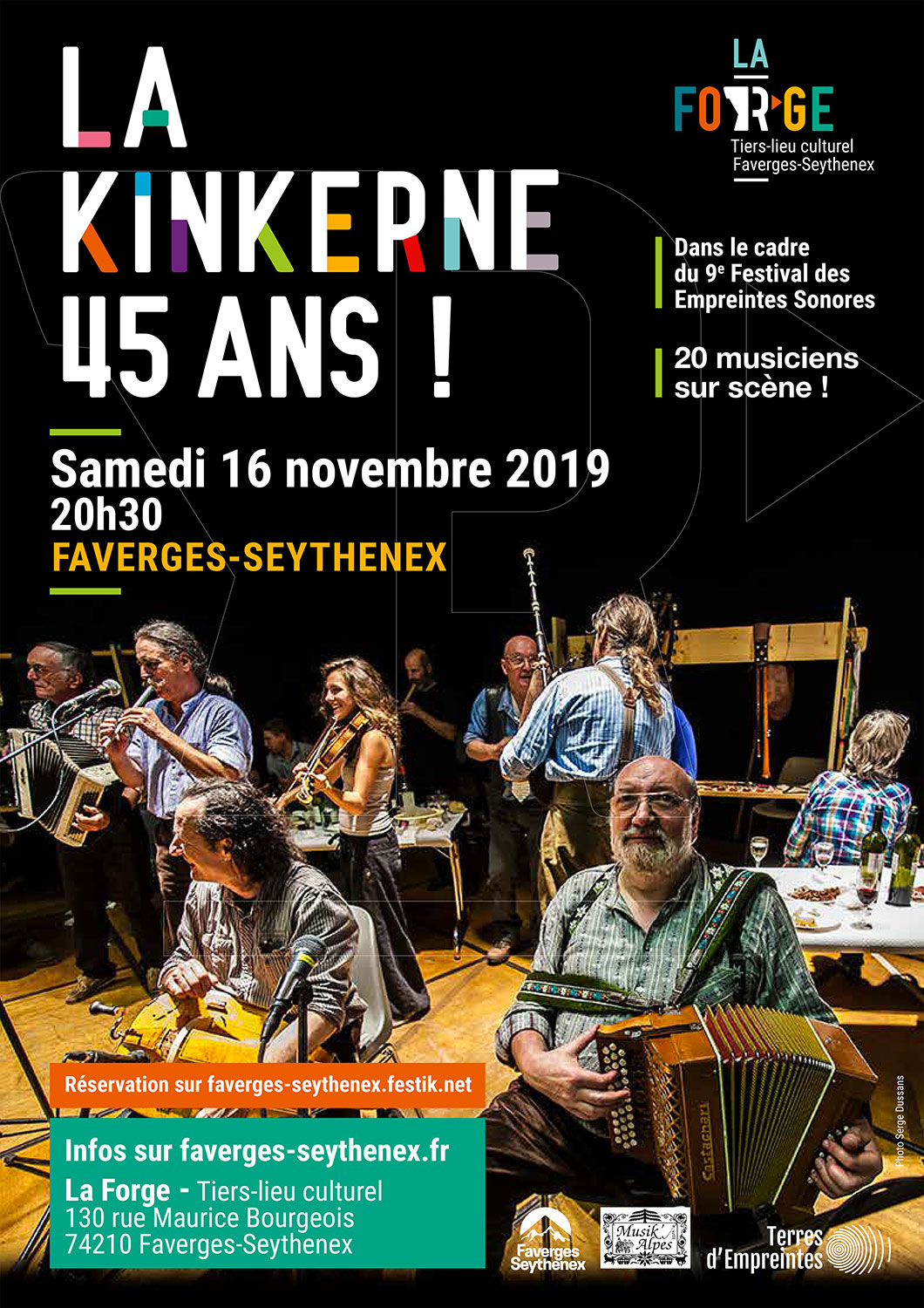 Le groupe phare des musiques traditionnelles savoyardes et alpines est en activité depuis l’automne 1974. Il n’y a guère que les Bretons de Tri Yann (qui fêtent cette année leurs 50 ans) pour faire mieux en termes de longévité ! La Kinkerne a choisi La Forge pour souffler ses 45 bougies, en compagnie de nombreux invités venus de toutes les Alpes.